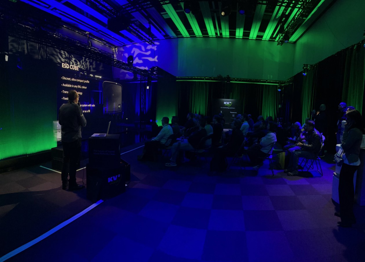 Guests witnessed a range of KV2’s point-source solutions – including the EX, ESR, SL, and VHD series – as 3D holographic projections of each loudspeaker materialised before them. Hosted by KV2’s Jonathan Reece, the presentation guided visitors through the versatile applications of their audio technology, pairing powerful, precision sound with projections of real-world use cases — from houses of worship and theatre environments to the room-shaking intensity of nightclub audio.