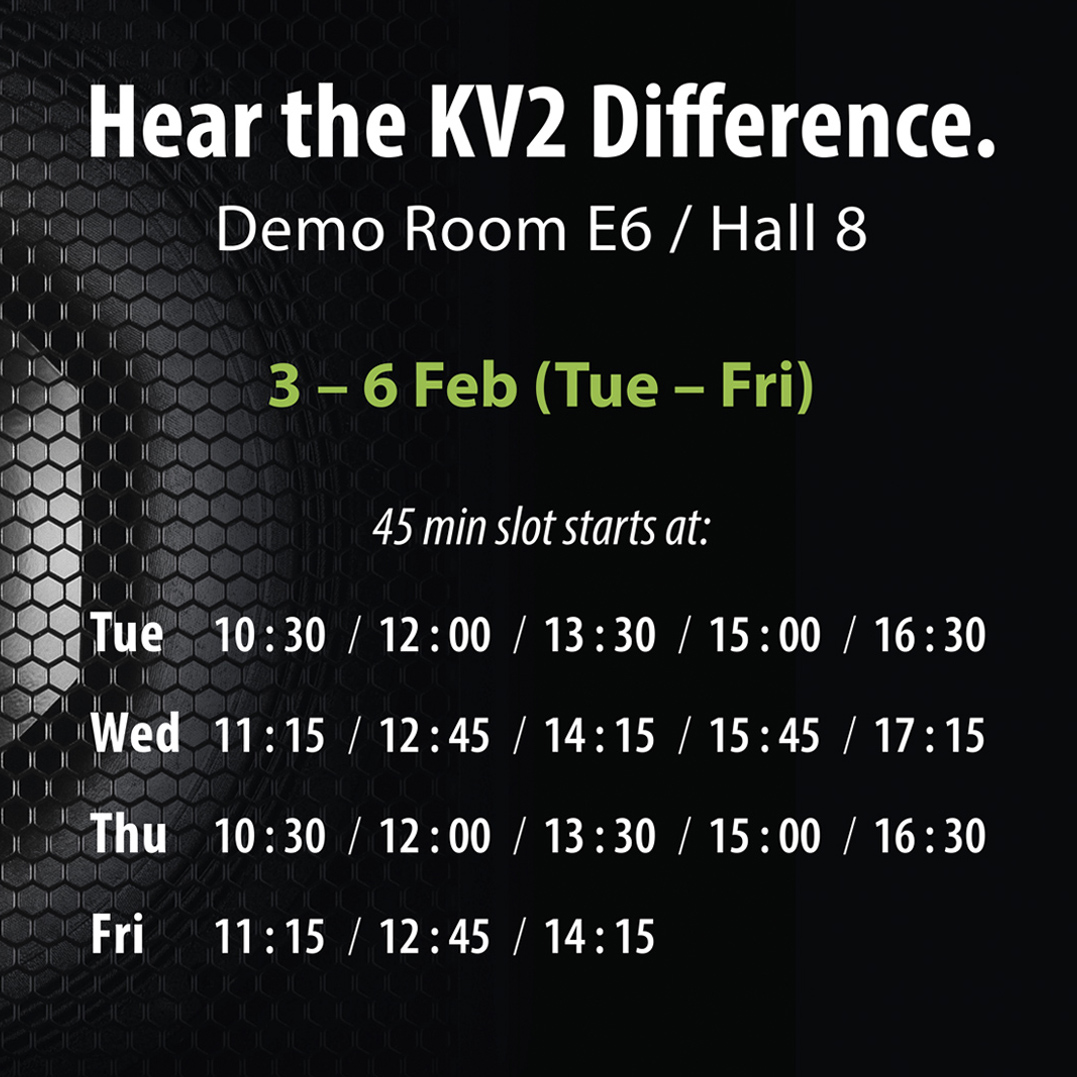 KV2 Audio will be exhibiting its cutting-edge solutions in Hall 7, Booth #7K880, while attendees are invited to Audio Demo Room E6 for a one-of-a-kind sound showcase.