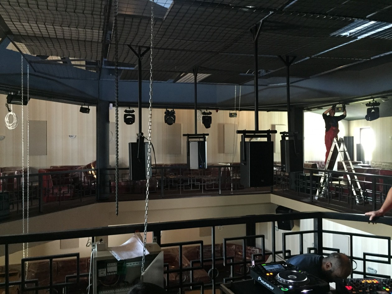 Before the installation begun, Marius Craiu of Audiovision Store explained to the client the importance of acoustical treatment. “I really loved the project from the beginning and especially Csaba’s openess to our solution”, Marius remembers and adds: “We recommended him to consider the windows from the start and some soundproofing of the walls and ceiling and he made it happen”. All the windows that could cause any harm to the acoustics were removed and replaced by faux ones from the outside. “For the walls we used 60 acoustic panels over 50Sqm, in order to cancel a flutter effect created by the peak pyramid form of the ceiling”, says Marius. "After I explained to him how important it is that a Club should have good soundproofing and acoustics, he immediately cancelled all the planned windows, (which are now fake windows - see the photo of the club)." After that, a soundproofing material was placed on all the walls and ceilings with a 15cm depth.
