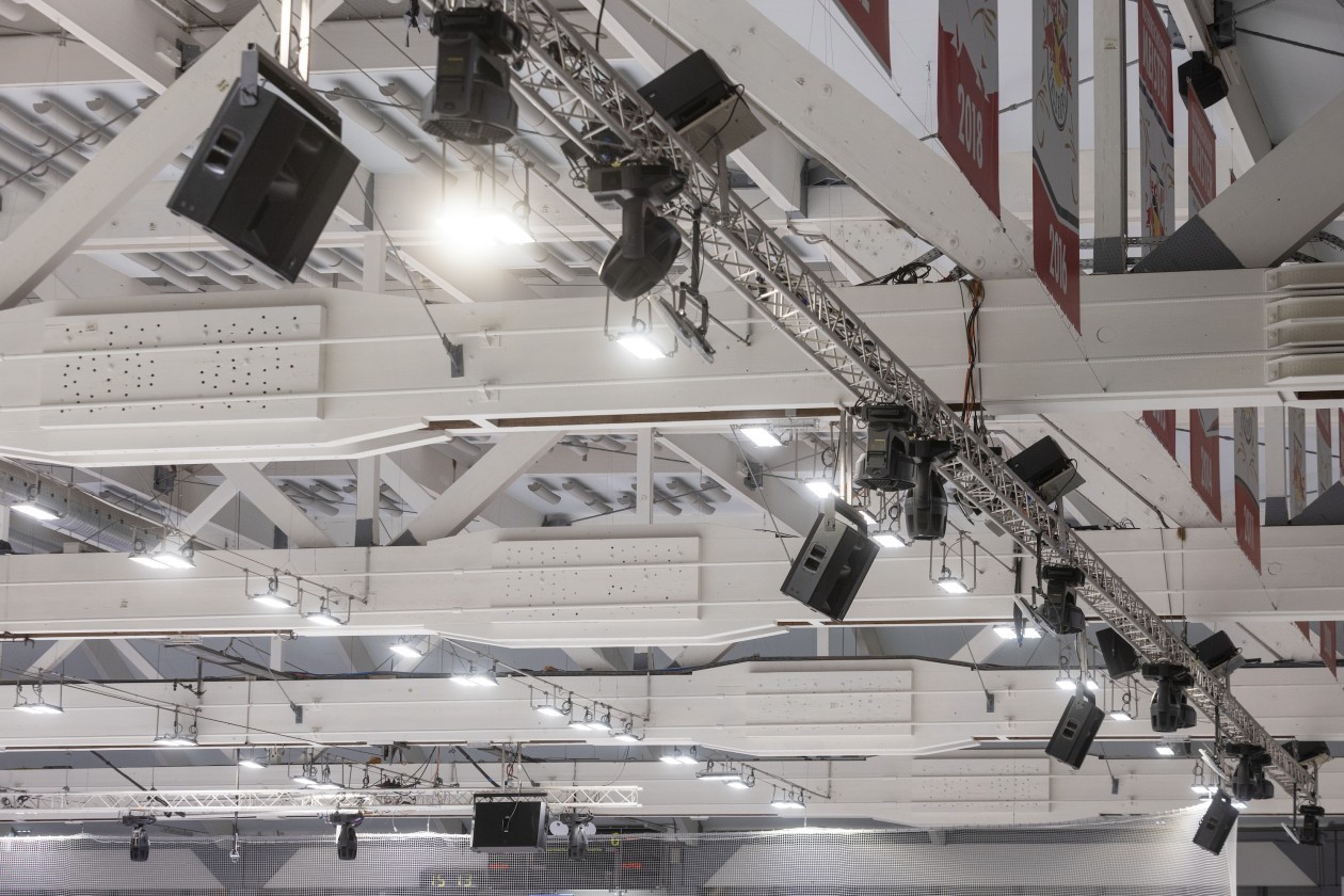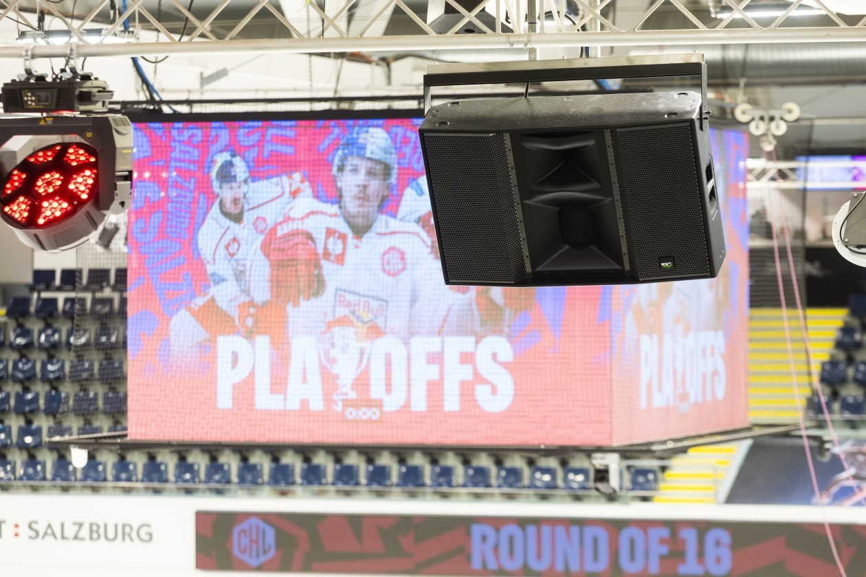 Over the years, the venue’s sound system had been assembled from mismatched components and no longer met the high-performance, festival-level expectations of professional sports venues. Existing loudspeakers were mounted in three-box clusters aimed in different directions, resulting in more than a dozen conflicting coverage angles in each section – making speech intelligibility practically impossible. To add to the problem, the glass, concrete, metal, and perfectly smooth ice surface caused intense reflections that further reduced clarity. EC Red Bull’s Operations Team turned to KEY-WI MUSIC, Salzburg’s leading music shop. “As a Salzburg-based supplier and installation partner, KEY-WI MUSIC is always looking to support local projects,” says Gerhard Bernegger, Founder and CEO of KEY-WI MUSIC. “As always, we evaluated solutions from major manufacturers, but we were confident that only KV2 could deliver an audio experience that met every technical requirement of the venue.”