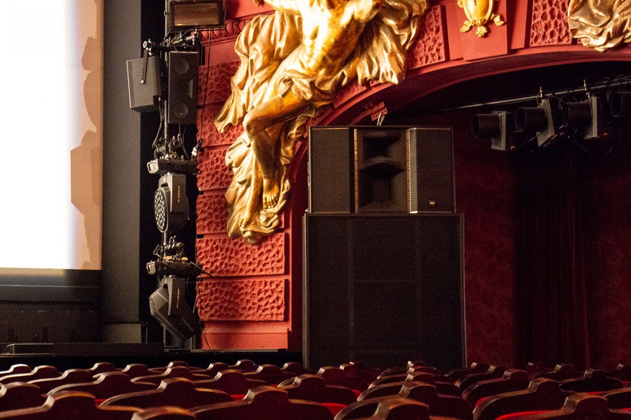 Two EX26s served as in-fills - extending the horizontal coverage of the main PA system - and six EX6s served as outfills for the side rank areas. Six ESD5 front fills were used for the first rows of seats. These were invisibly integrated into the edge of the stage. Another six ESD5s were also used as delay lines under the balcony. The stage monitoring was done with eight ESD6 and three ESM26.