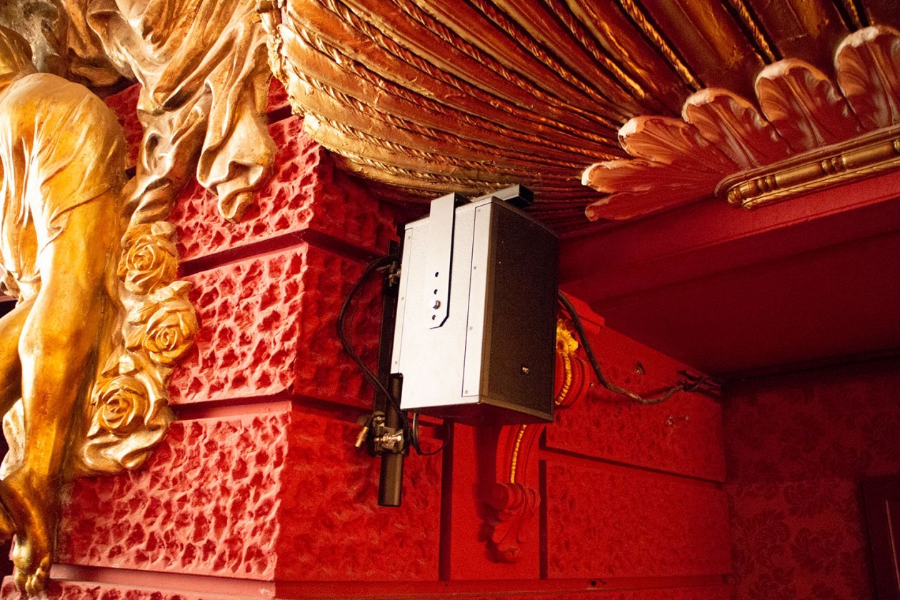 The delay lines for the upper three tiers as well as the surround system are part of the permanent installation of the house.