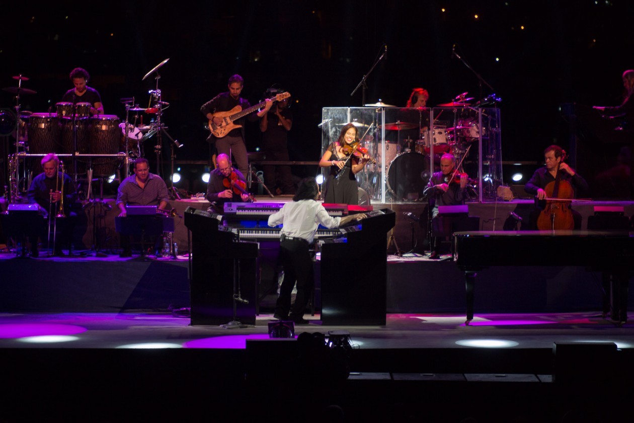 The lighting rig, designed by Bud Horowitz, employed for Yanni was controlled by a High End Systems Hog 4 console with wings and included 24 ROBE BMFL wash, 28 Martin Mac Viper AirFX, 28 JB-Lighting JBLED A7 and 22 PR Lighting XR 200 5R Beam moving heads. These were complemented by four MFL 1.000W fixtures, six LED 18x10W par cans, 16 LED bars and 15W COB LEDs, four Molefay Blinders, four Super Trouper Follow spots and four Smoke Factory Tour-II hazers.