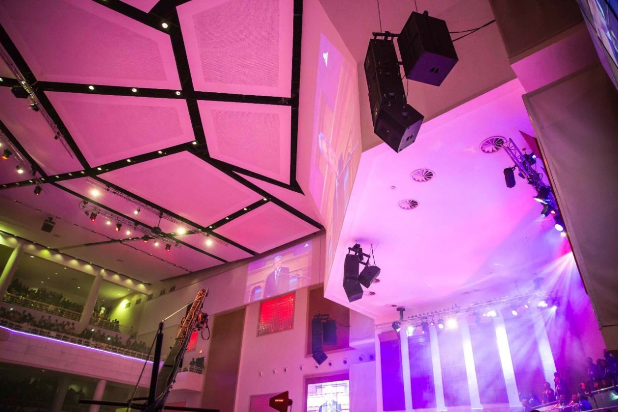 The main concern was to create systems that would be powerful, accurate, flexible, easy to operate and fitted to the complex’s various requirements of zones for different uses. It was not an easy set of tasks given that there were several construction and architectural constraints. The Main Auditorium accommodates 12.000 people, Prayer Chapel 700 people, the foyer, the corridors, utility rooms etc., are areas of traffic of congregation, visitors, and staff. Audigys implemented the acoustic, sound reinforcement system, lighting system, audio and video studies.